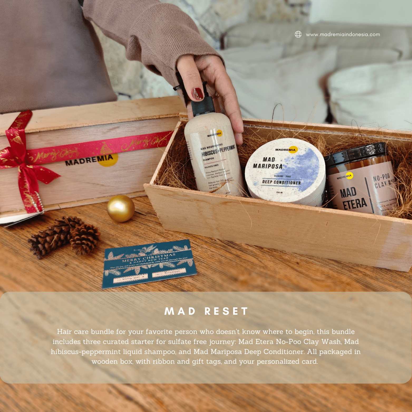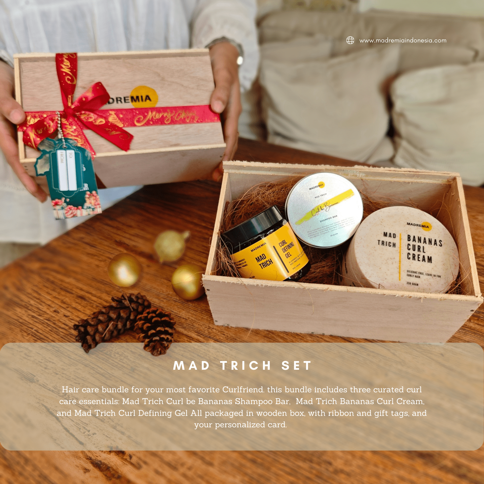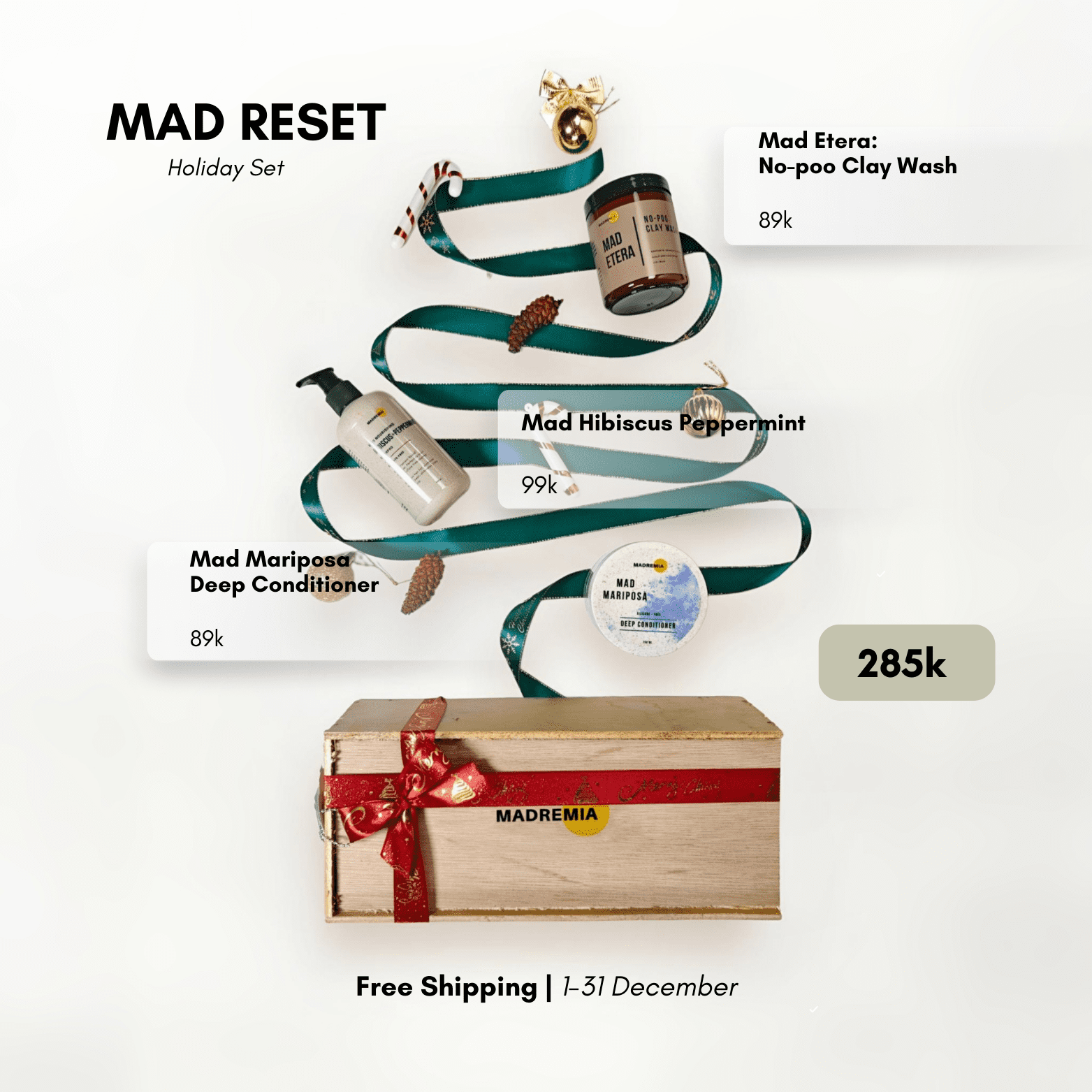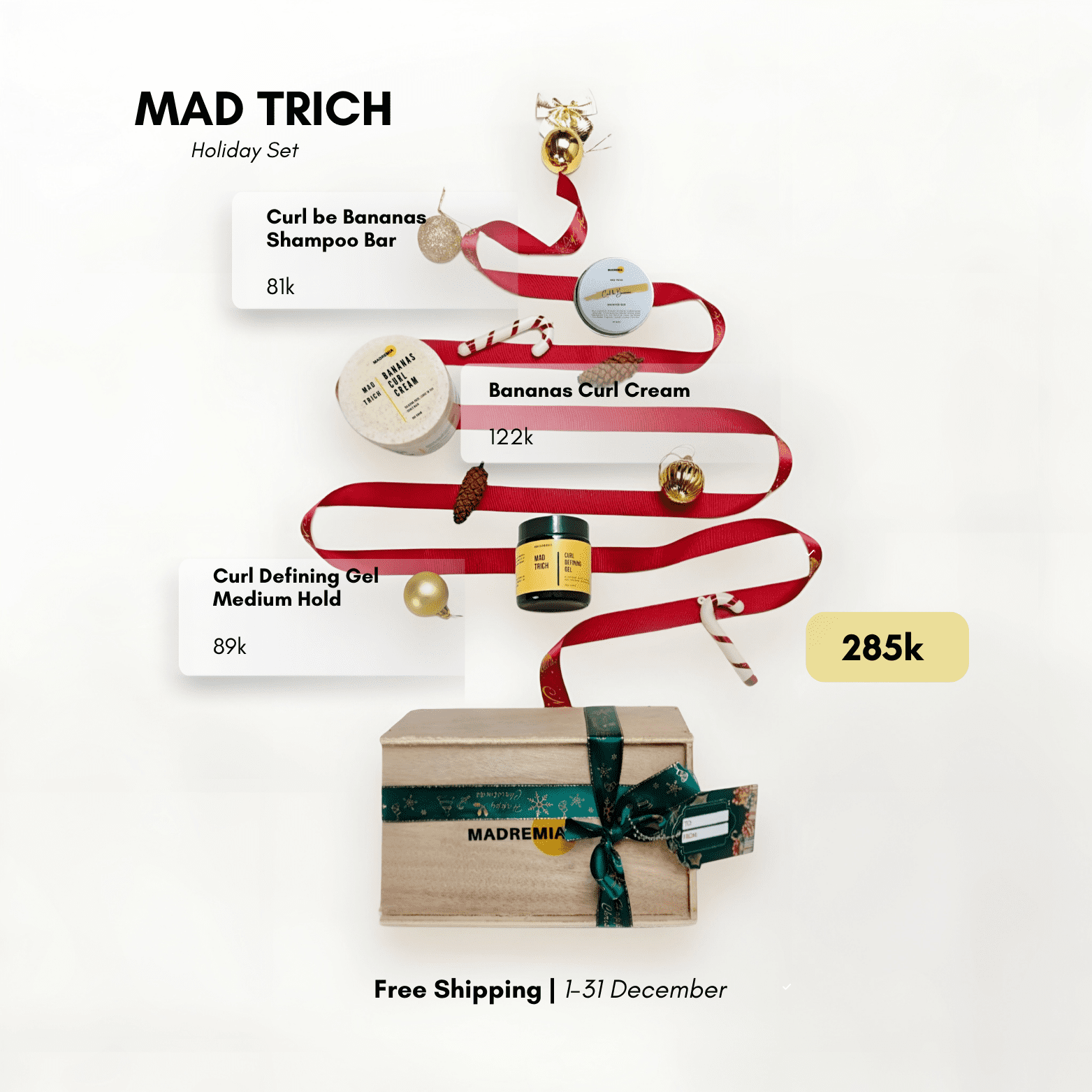 Our Holiday Sets are curated for effortless gifting for you and your loved ones. Available in four variants, each filled with our best-selling essentials: the sweet and uplifting Mad On Collection, the calming and nourishing Mad Soma Collection, the iconic curl-loving Mad Trich Collection, and the refreshing Mad Reset Collection for those beginning their sulfate-free journey.
